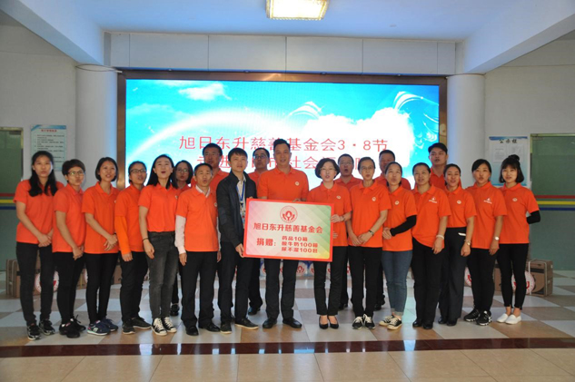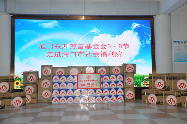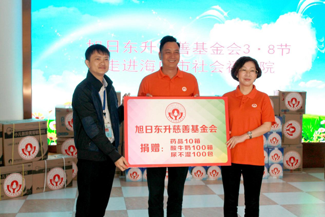3月8日恰逢婦女節,旭日東升慈善基金會志愿者在理事長湯旭東先生和執行理事長劉景萍女士的帶領下,來到海口市社會福利院開展以"我們的愛"為主題的送溫暖活動,在為福利院的孩子們帶去關懷和溫暖的同時,也向福利院的老師們表達敬意與問候。▲基金會理事長湯旭東先生與執行理事長劉景萍女士一道向福利院捐贈物資