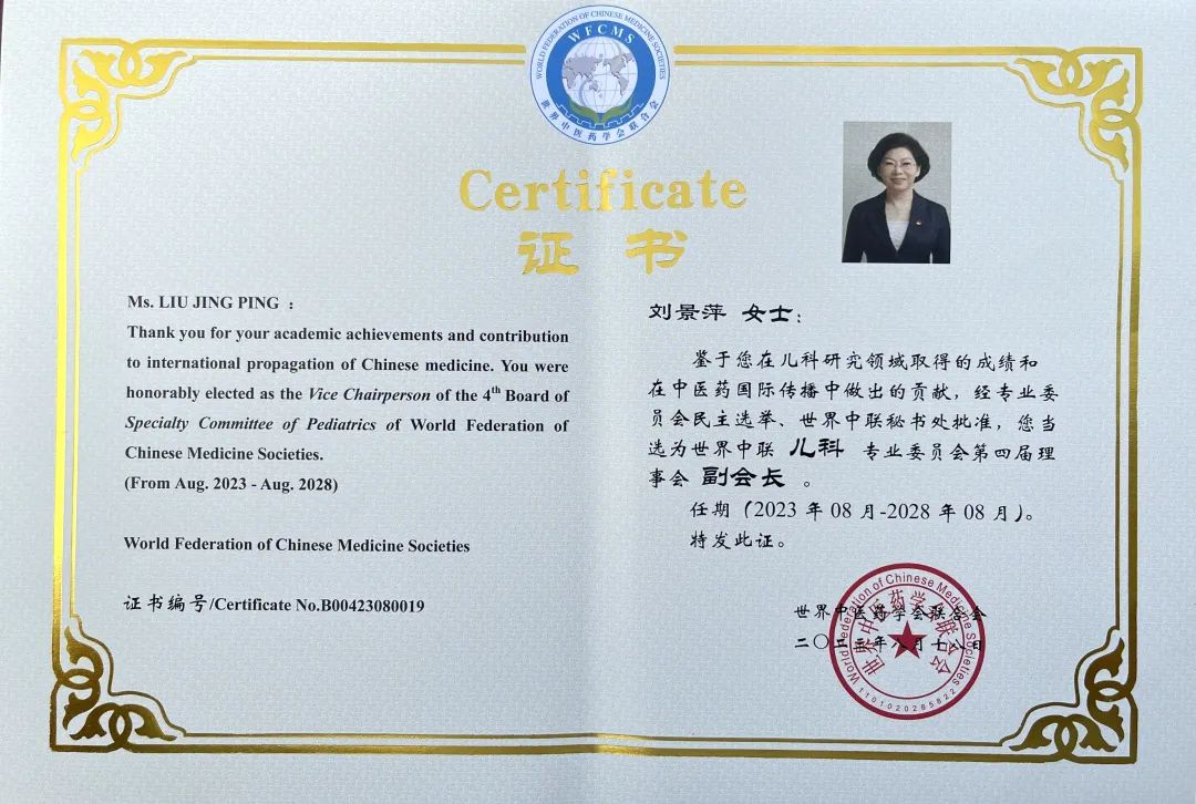 人生就是搏·(中國區(qū))官方網(wǎng)站集團(tuán)黨委書記、董事長劉景萍當(dāng)選世界中醫(yī)藥學(xué)會(huì)聯(lián)合會(huì)兒科專業(yè)委員會(huì)第四屆理事會(huì)副會(huì)長