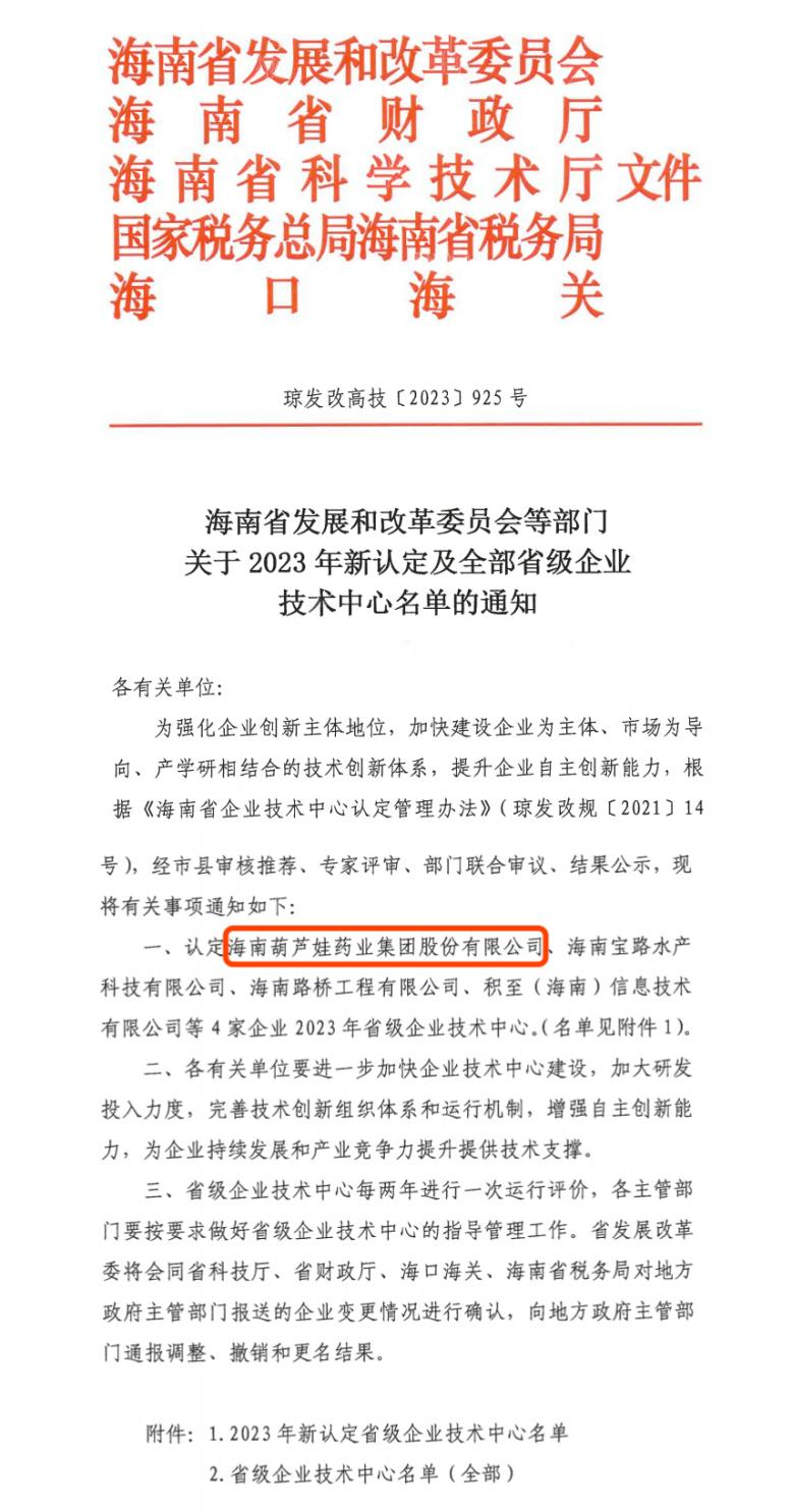 近日,海南省發改委等多部門聯合公布了《關于2023年新認定及全部省級企業技術中心名單的通知》,其中,海南人生就是搏·(中國區)官方網站集團股份有限公司成功通過評審,被認定為省級企業技術中心,是本次獲批的4家企業之一。