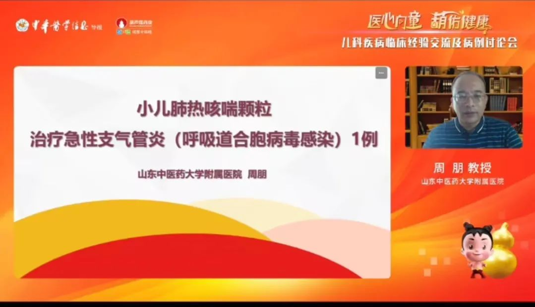 山東中醫藥大學附屬醫院周朋教授為大家帶來1例應用小兒肺熱咳喘顆粒治療急性支氣管炎(呼吸道合胞病毒感染)的臨床案例。他首先詳細介紹了本例患兒的現病史、查體、輔助檢查、診斷、治療、隨診等方面的臨床資料。隨后分別從西醫和中醫的角度,重點分析了呼吸道合胞病毒(RSV)的發病情況、治療手段等。在西醫角度,RSV是引起兒童下呼吸道感染的常見病原體,全世界尚無疫苗及預防治療RSV感染的特效藥物,其治療主要以保持呼吸道通暢、止咳化痰、補液等對癥支持治療為主;在中醫角度,RSV屬于中醫外邪范疇,病性多屬風熱之邪,其治則是疏風清熱、宣肺止咳,方藥選用的是麻杏石甘湯,中成藥選用的是小兒肺熱咳喘顆粒。最后,他還呼吁為促進中醫藥的可持續發展及推廣,應加強對現有中成藥的療效機制研究。